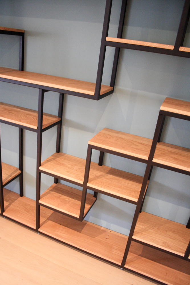 Conception, réalisation et placement d'une bibliothèque habillant le mur d'un salon.