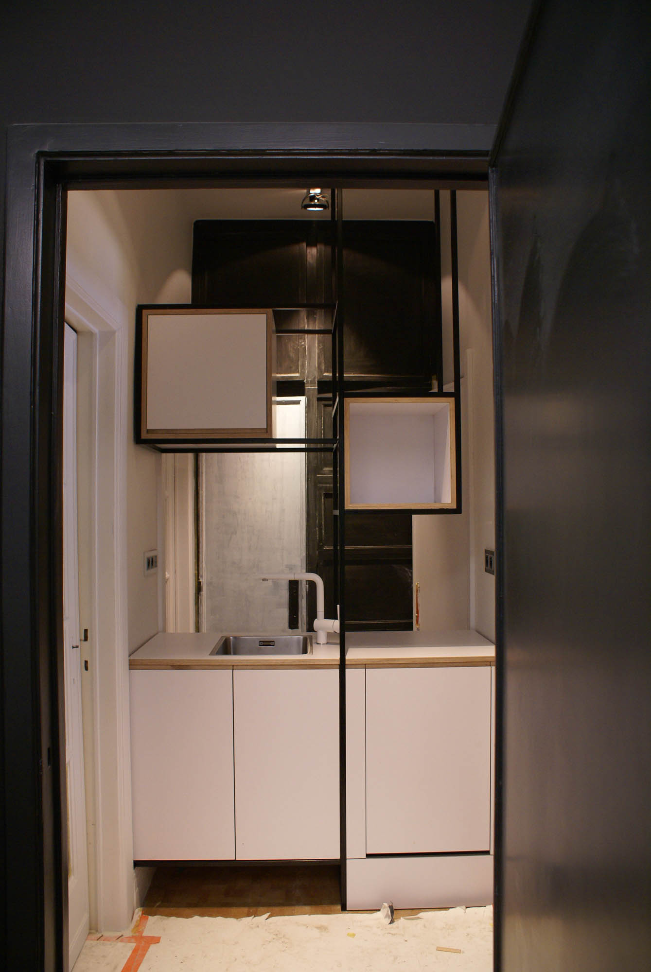 Conception, réalisation et placement d'une petite cuisine en vue d'équiper un bureau d'architecture Bruxellois